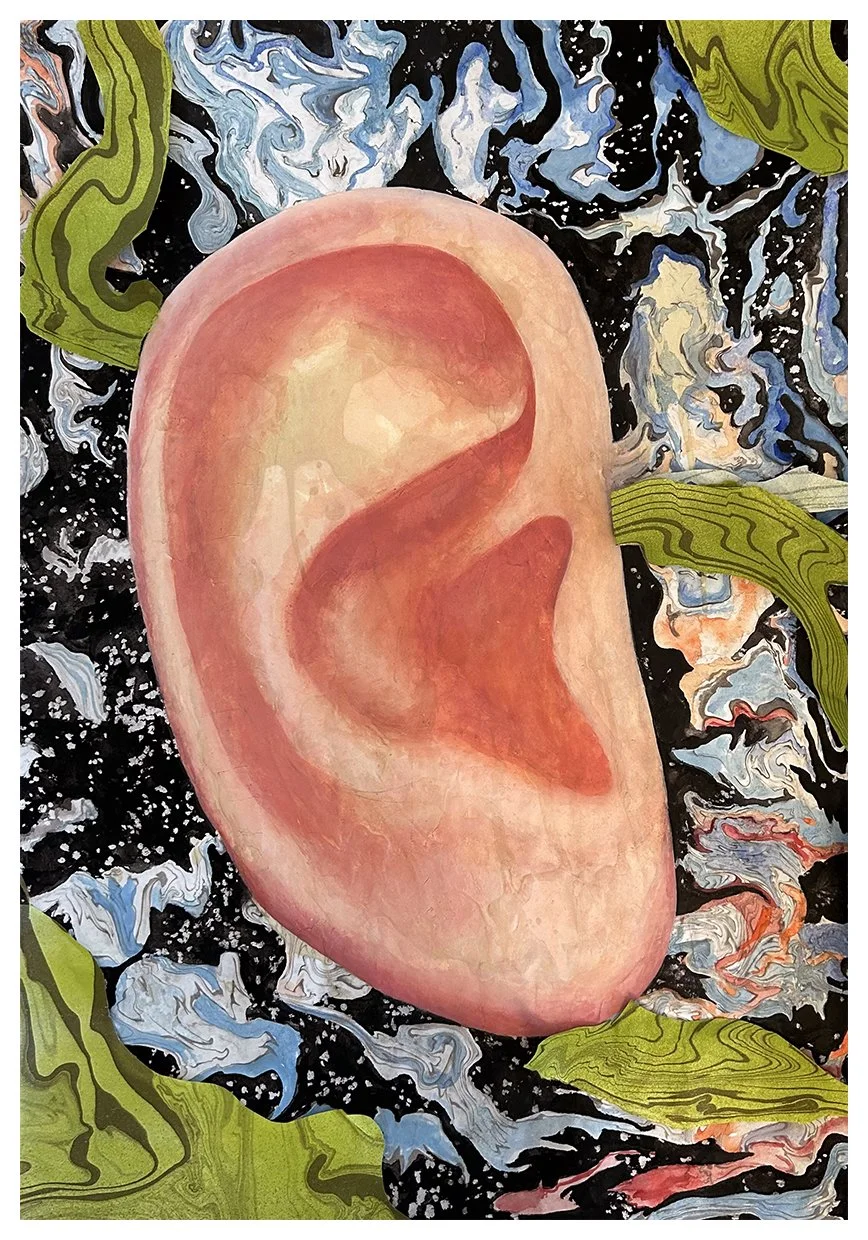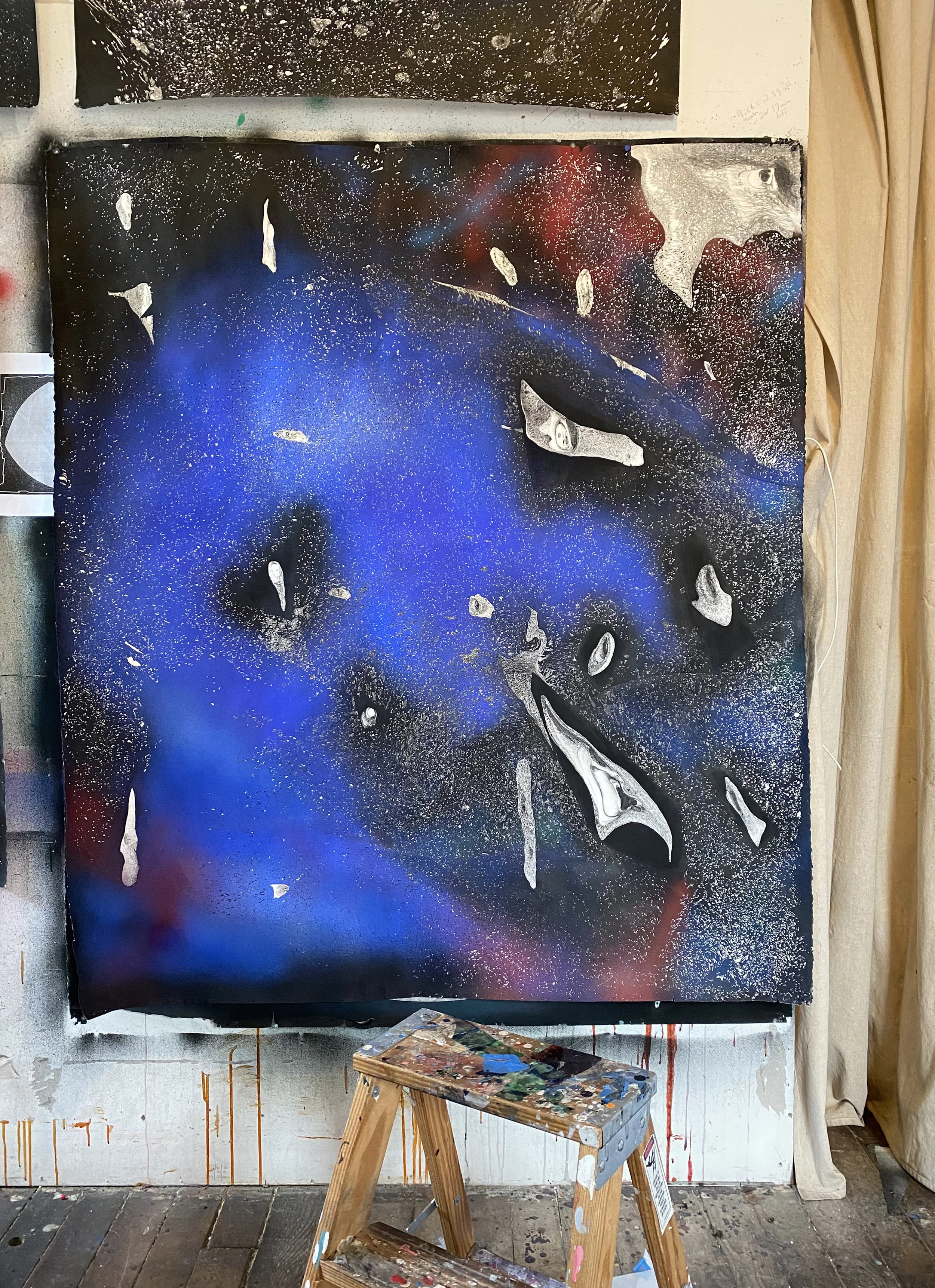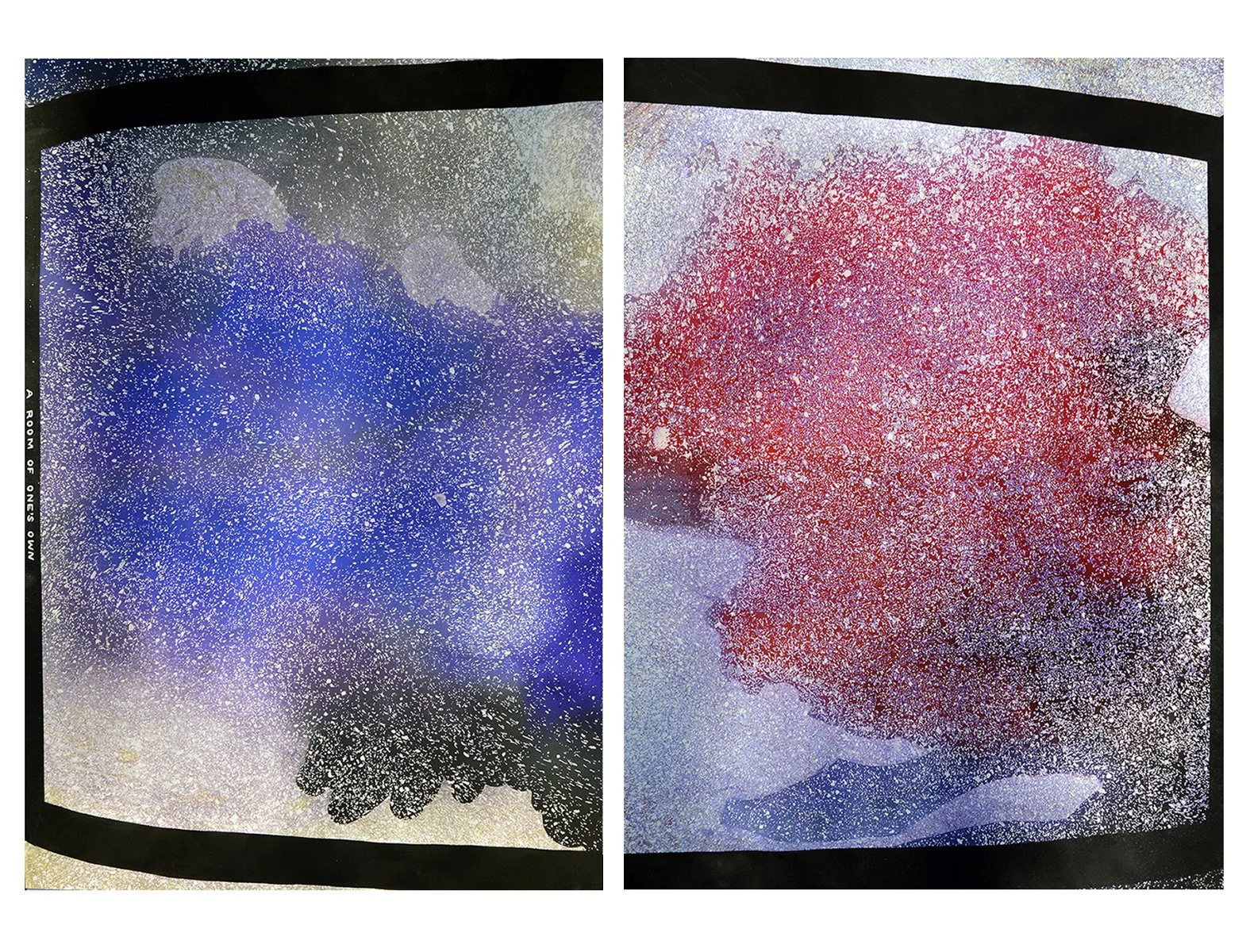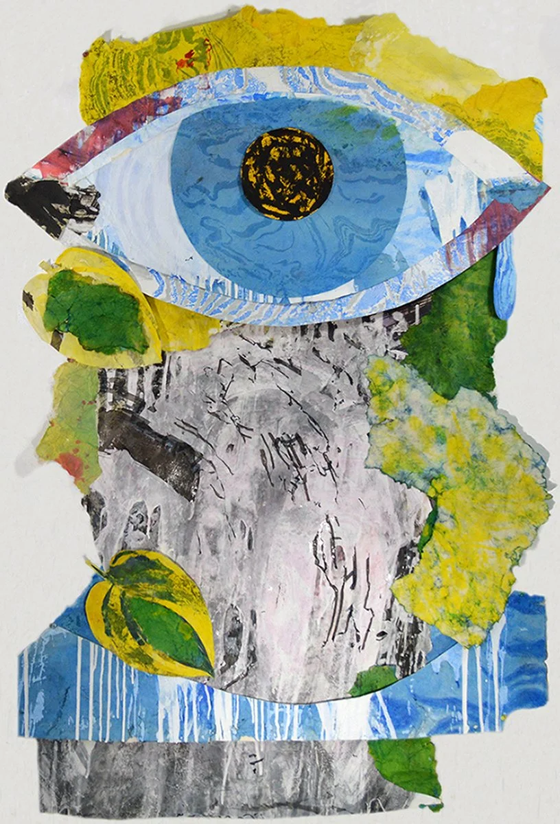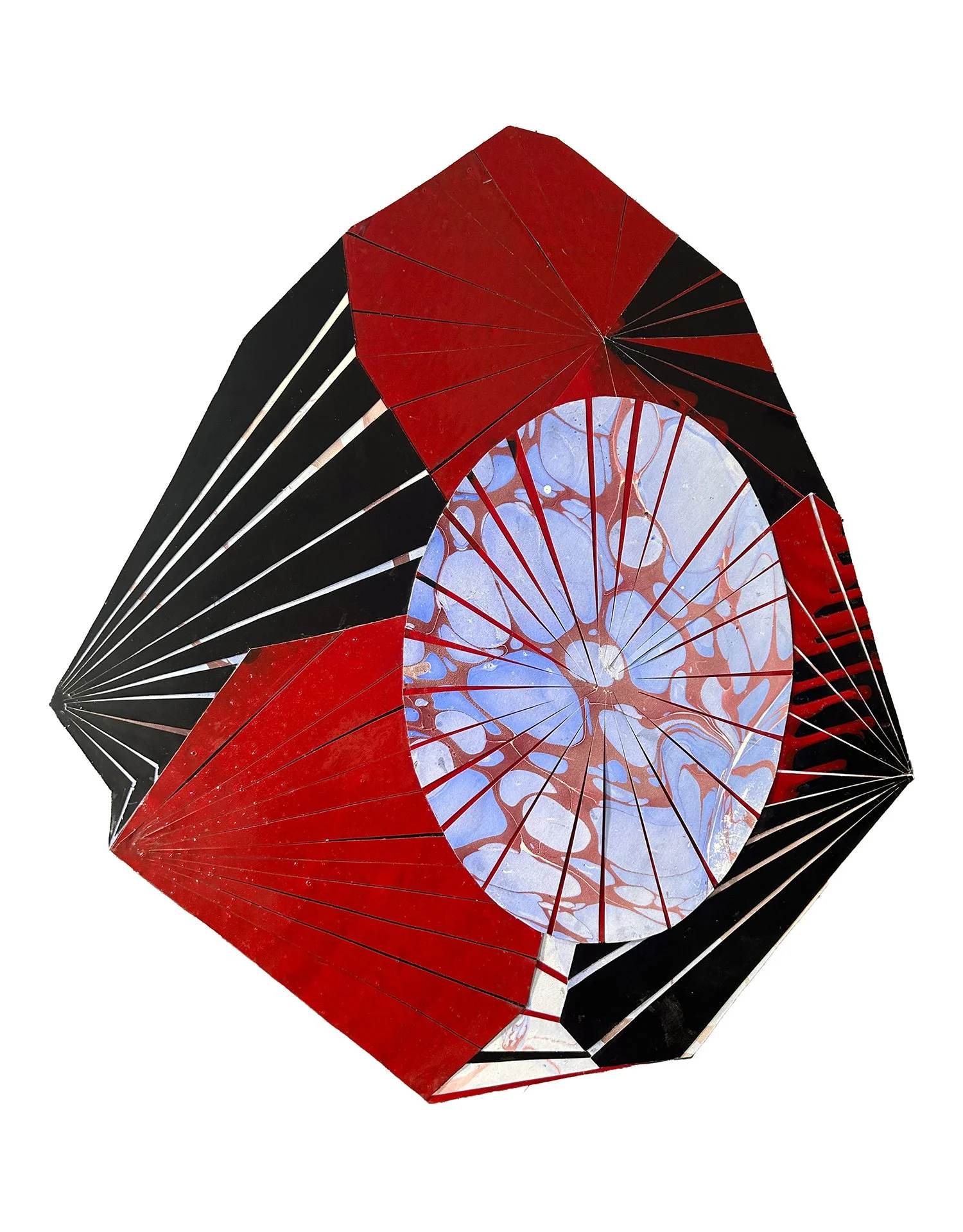 Julie’s work combines materials and methods from eastern and western marbling traditions, dating from the 12th century, with western approaches to painting. Water, pigment, and breath are used to create each work. The process begins with drops of acrylic paint on a liquid bath. The paint is induced to spread, move, and fragment by successive layers of paint and surfactants. The “floating painting” is then transferred to paper, and the final pieces are painted, and sometimes torn, cut and recombined.